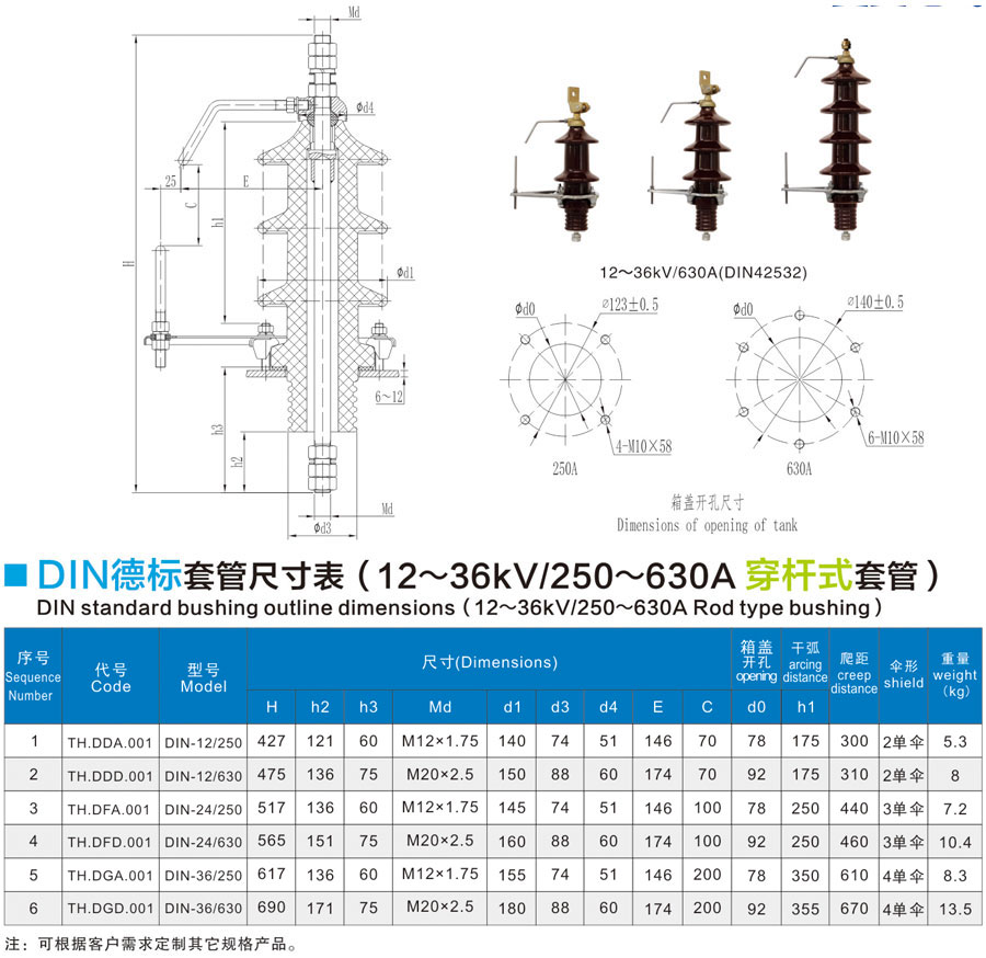DIN standard bushing 1-52kV