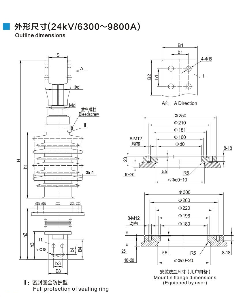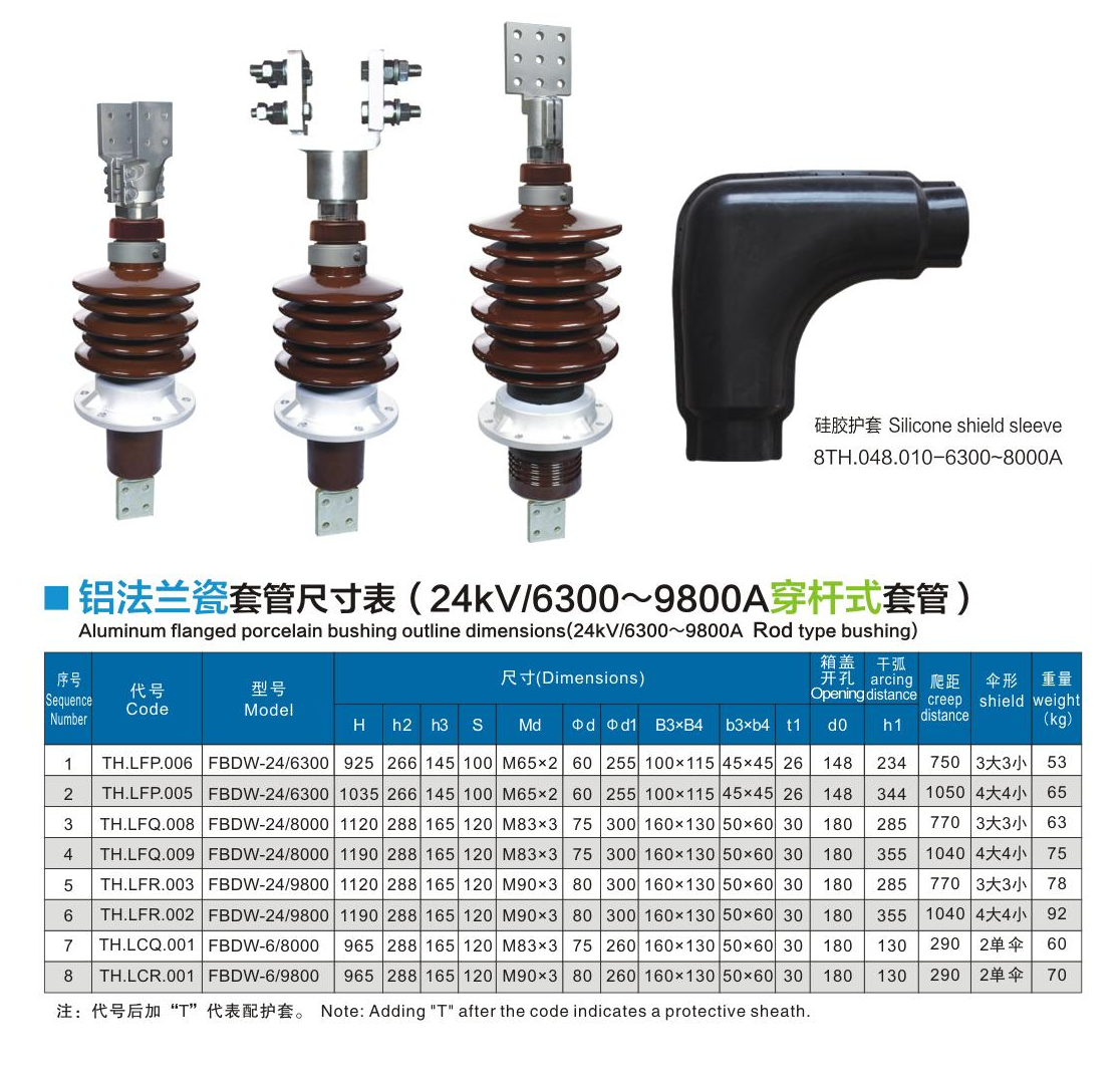 鋁法蘭瓷套管24kV/6300~9800A穿桿式套管