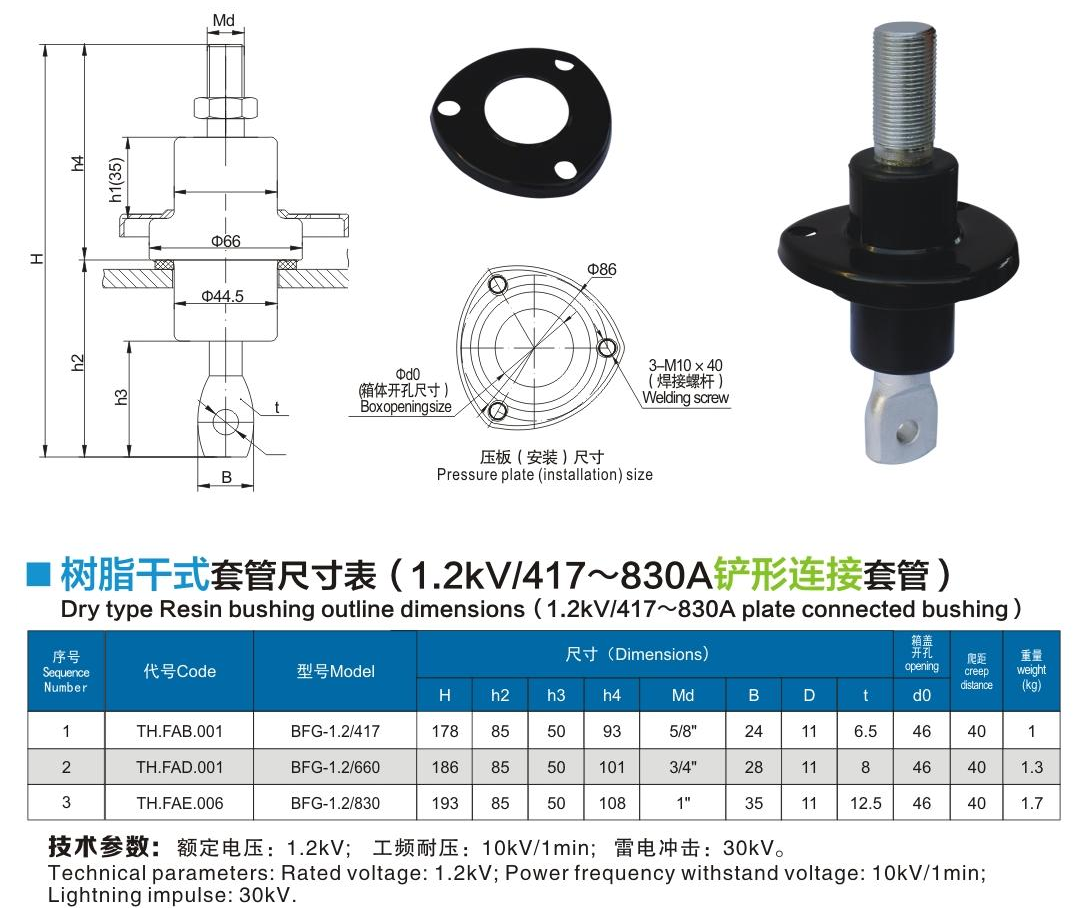 樹(shù)脂干式套管1.2kV/417~830A鏟形連接套管