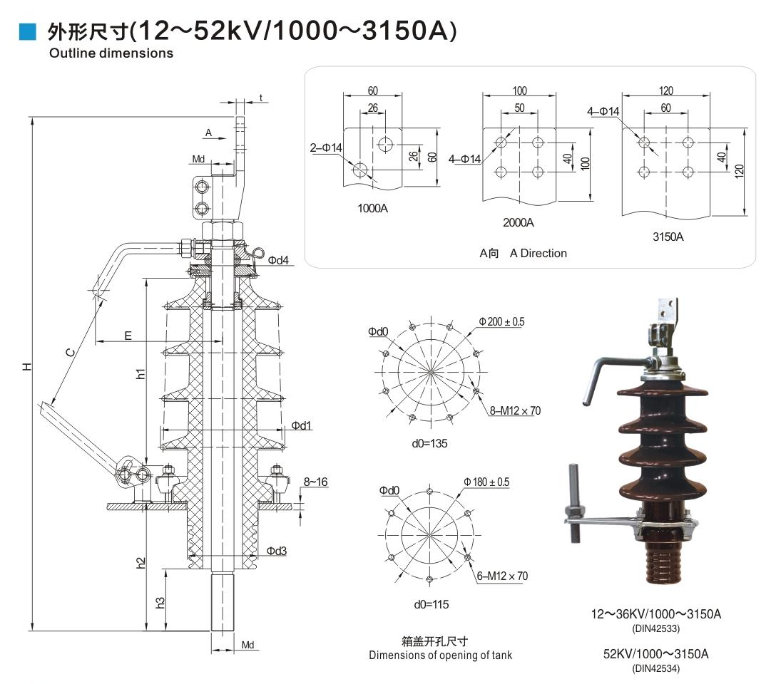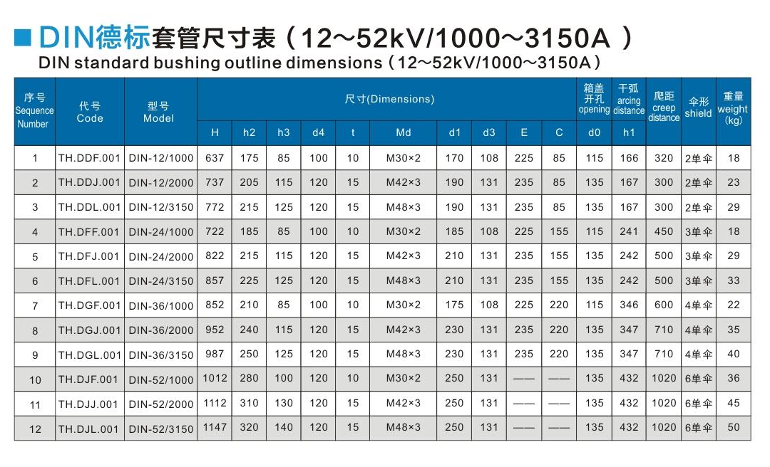 DIN德標(biāo)套管12~52kV/1000~3150A