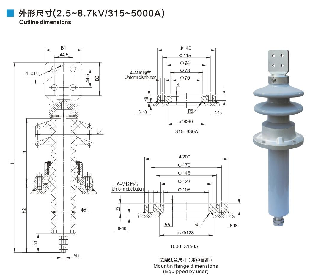 美標(biāo)套管2.5~8.7kV/315~5000A