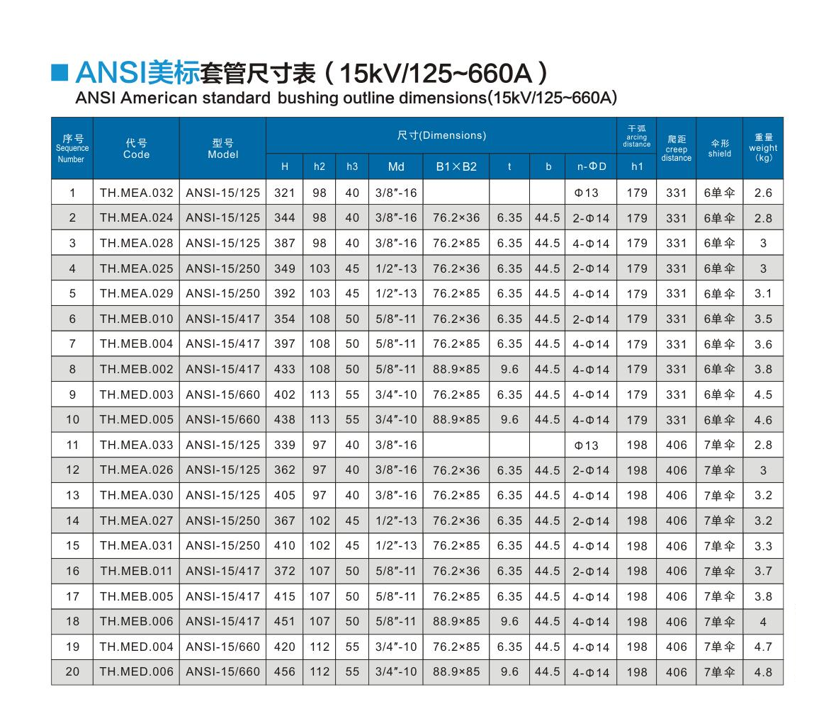 ANSI美標(biāo)套管15kV/125~660A