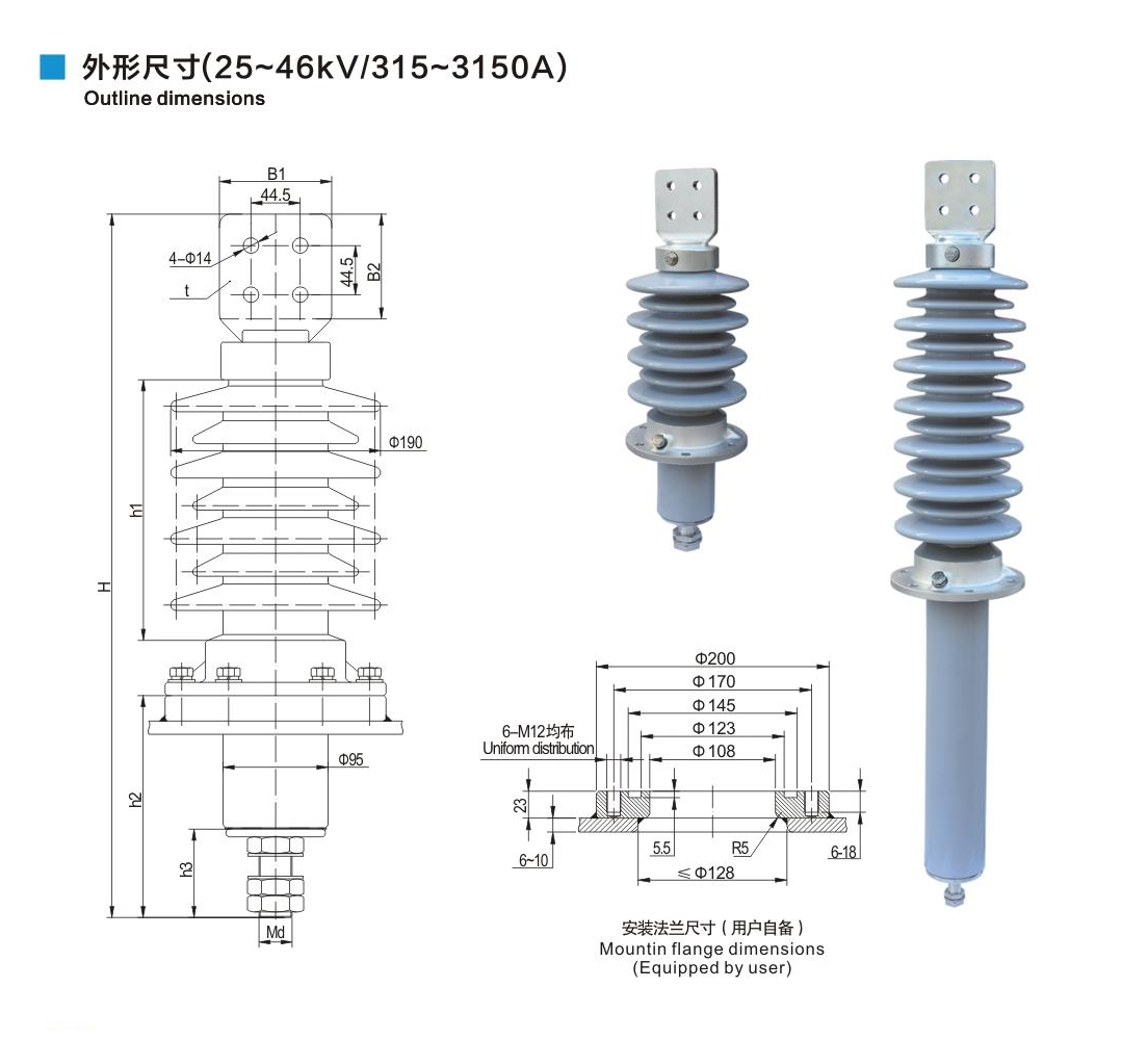 美標(biāo)套管25~46kV/315~3150A