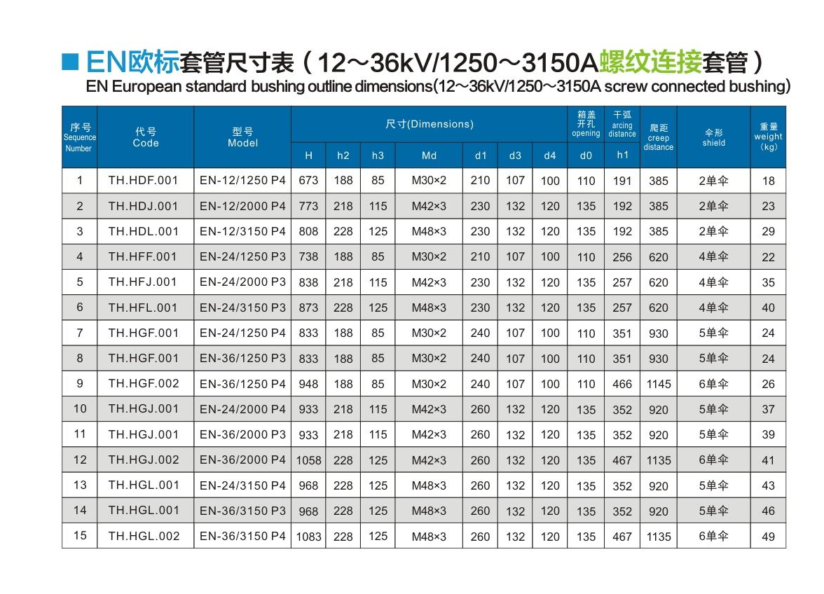 EN歐標(biāo)套管12~36kV/1250~3150A螺紋連接套管