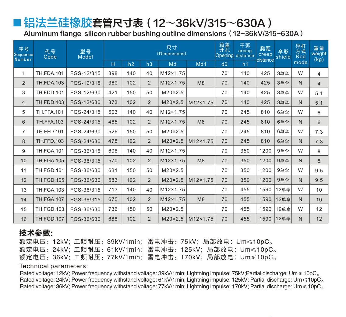 鋁法蘭硅橡膠套管12~36kV/315~630A