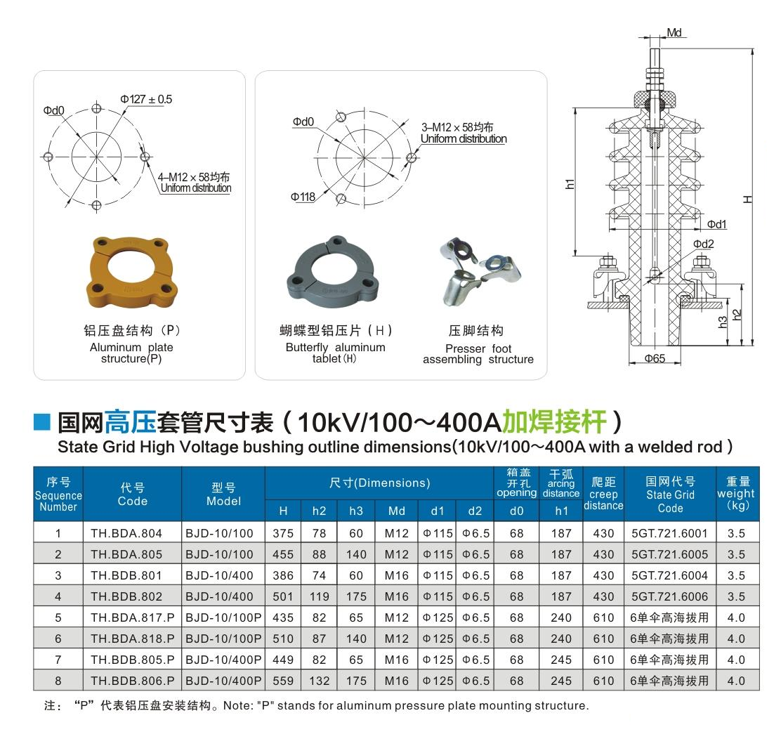 國(guó)網(wǎng)高壓套管10kV/100~400A加焊接桿